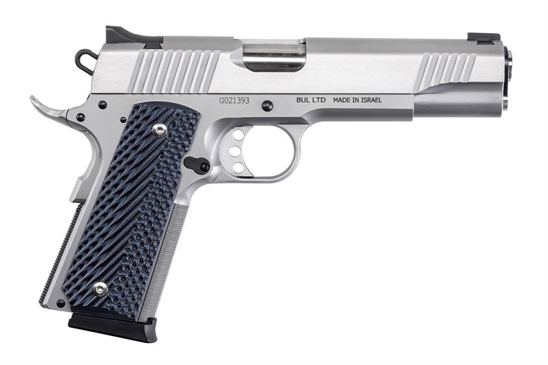 All Magnum Research 1911 series 70 slide and frame rails are machined to aerospace tolerances, delivering accuracy that will match any custom gun. This stainless finished pistol features a stainless match barrel, G-10 grips, light trigger with zero creep, and a stainless beavertail grip safety.